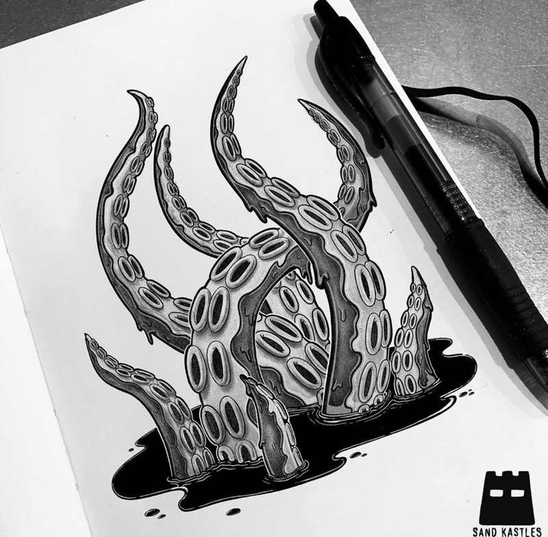 "I get an idea and I draw shit! Actually I just think a lot until I have to get an idea on paper, and then I just work it out and discover what the piece will become as I am working."