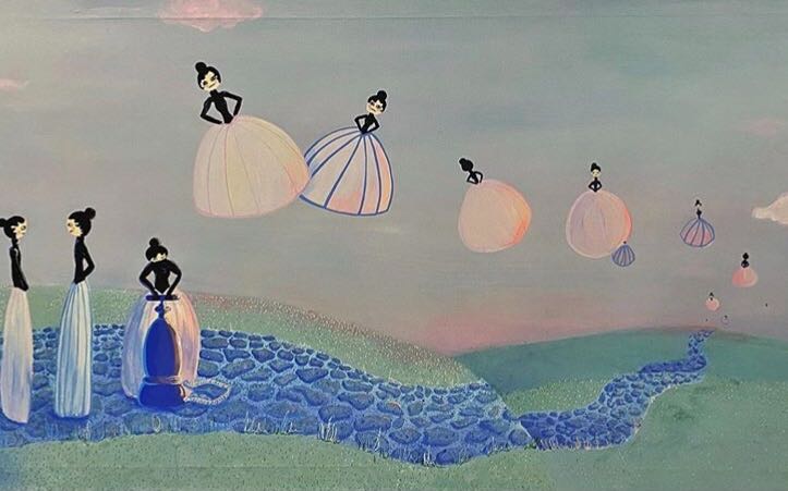 Hmmm... I am working on a piece right now, called "Instead of Counting Sheep." In it, these women inflate their skirts with a pump and float away into the sunset. I think I'd like to meet one of them.... or maybe I'd rather BE one of them and float away.