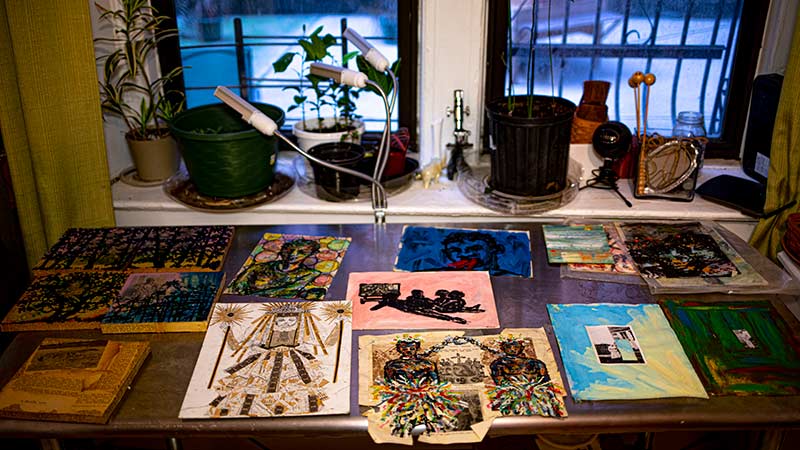 I am an African American emerging artist living and working in Inwood/Washington Heights, New York City. I am primarily a painter, collagist, and drawer. I ask specific questions I try to answer throughout the creation of a series. Working on a community or a neighborhood where the subjects of the series live is important. After collecting vintage materials from archives and books that support the research, I can piece together a narrative. Typically, the vintage materials I collage to establish the historical roots of the piece. After the collage dries, I am free to paint or draw on the surface. My paintings are in oil, I use various pastels to draw. The act of painting/drawing is a dialogue in itself. I like being very impulsive with the paint and I like using a lot of it so that it comes off the canvas and at the viewer.