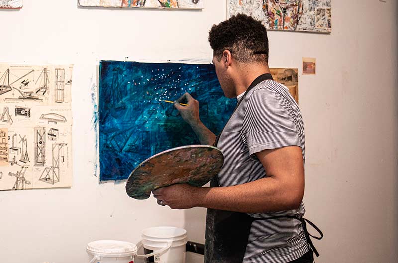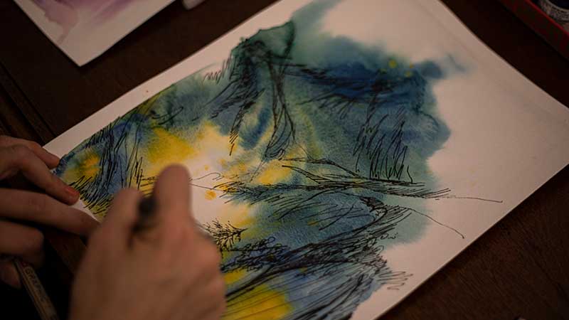 I can’t say who I am falls into a particular category. I am a lot of things. I’m an educator. Adventurer. Creator. Entrepreneur. Even within these vague titles, I invest my time into a range of activities with various media and people. I am first and foremost a painter, but I have a great passion for music composition. I’ve got a songwriting crew that I adore and I’ve been discovering the beauty of colored inks recently. I also harbor a special love for poetry and photographing mountains on foggy days.