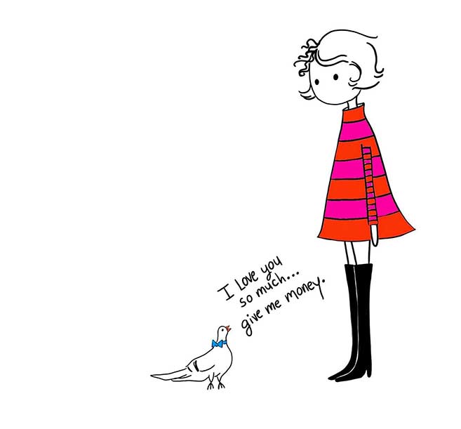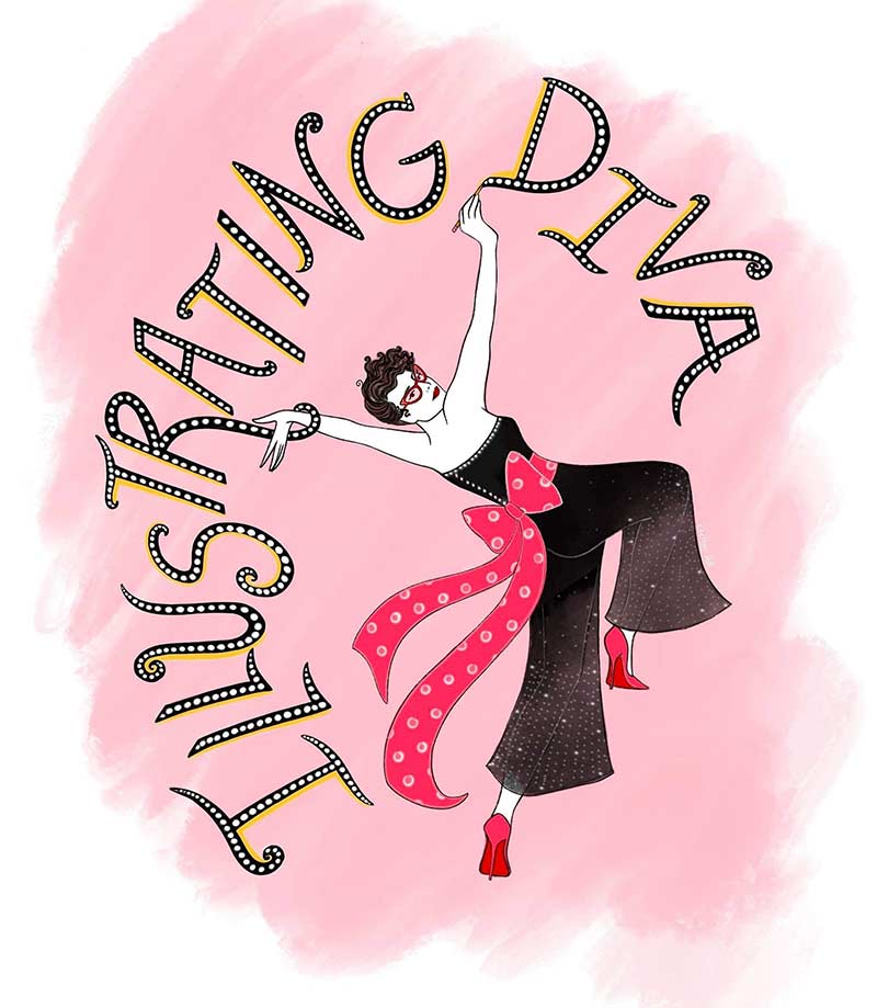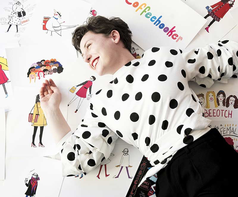 I’m a self-proclaimed Coffeehooker (a name I trademarked) who loves all things relating to music, humor, and glamour. I make illustrations that celebrate my favorite performers, that reflect my life experiences, and that play with fashion and humor. I like to say my personal style is a cross between Chanel and a clown. I look like what I draw. My illustrations are a visual extension of myself.