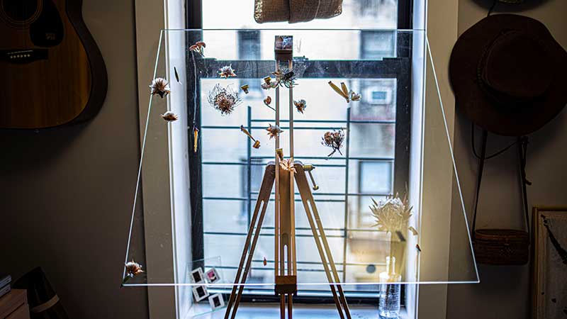 My favorite work is my current series I am working on. The floral and glass pieces derived from a watercolor series I began 5+ years ago. It is a piece that is constantly evolving and becomes more playful in media with each evolution.